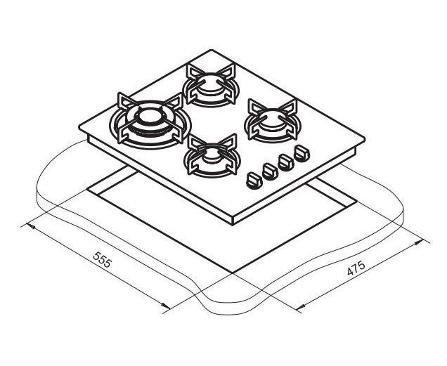 Левая ближняя конфорка газовая, мощность 3000 Вт, одноконтурная