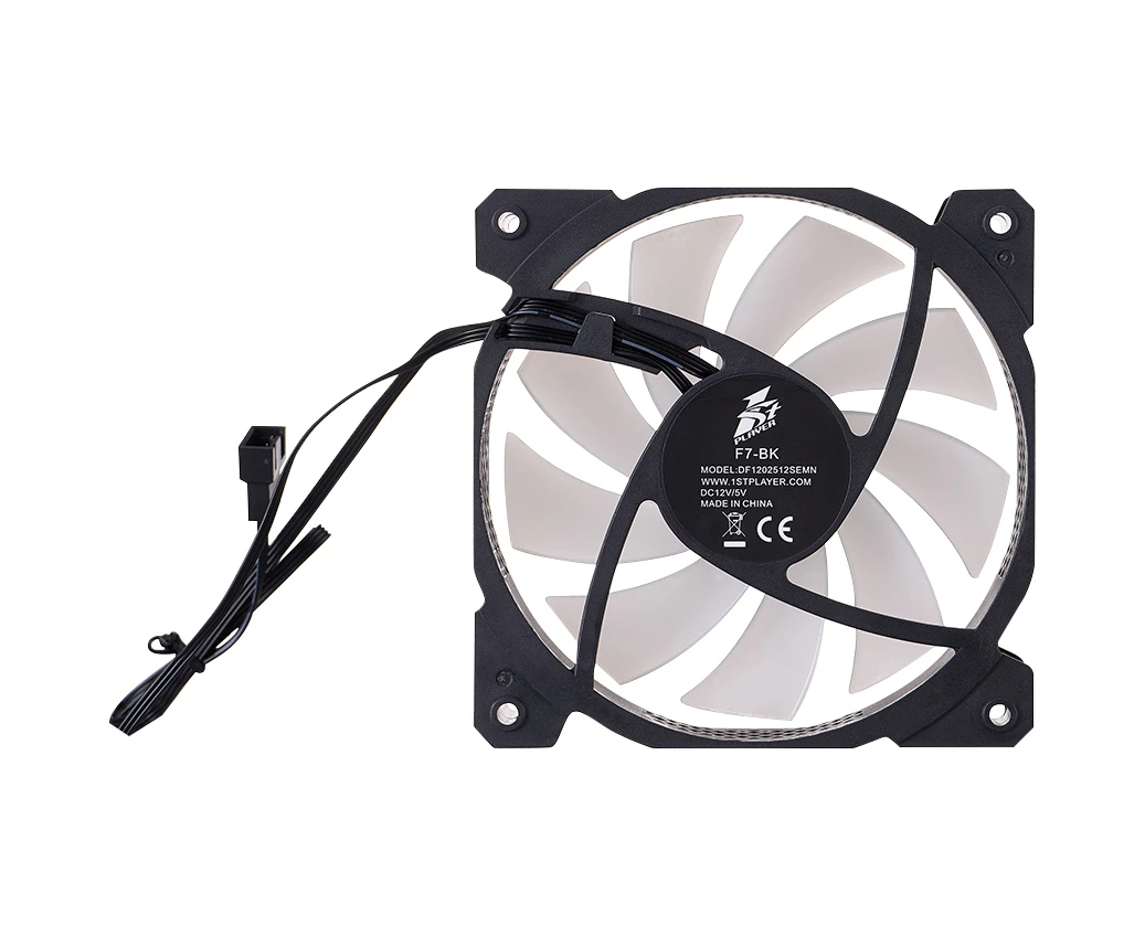 Вентилятор 1STPLAYER F7 Black (F7-BK) / 120mm ARGB 3pin 5V PWM 4pin 12V 600-1800rpm 56.34cfm 36.99dBA / Bulk