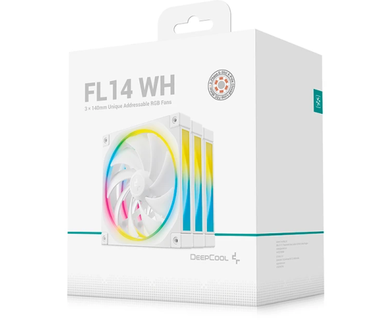 Вентилятор DEEPCOOL FL14 WH-3 in 1 140x140x25мм (PWM, ARGB, белый, 500-1700об/мин) Color Box
