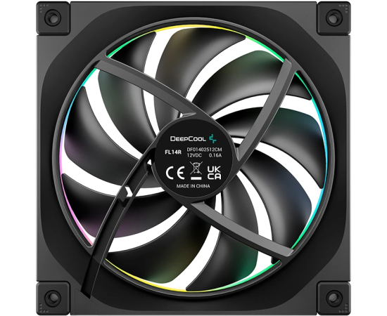 Вентилятор DEEPCOOL FL14R 140x140x25мм Reverse (PWM, ARGB, черный, 500-1700об/мин) Color Box