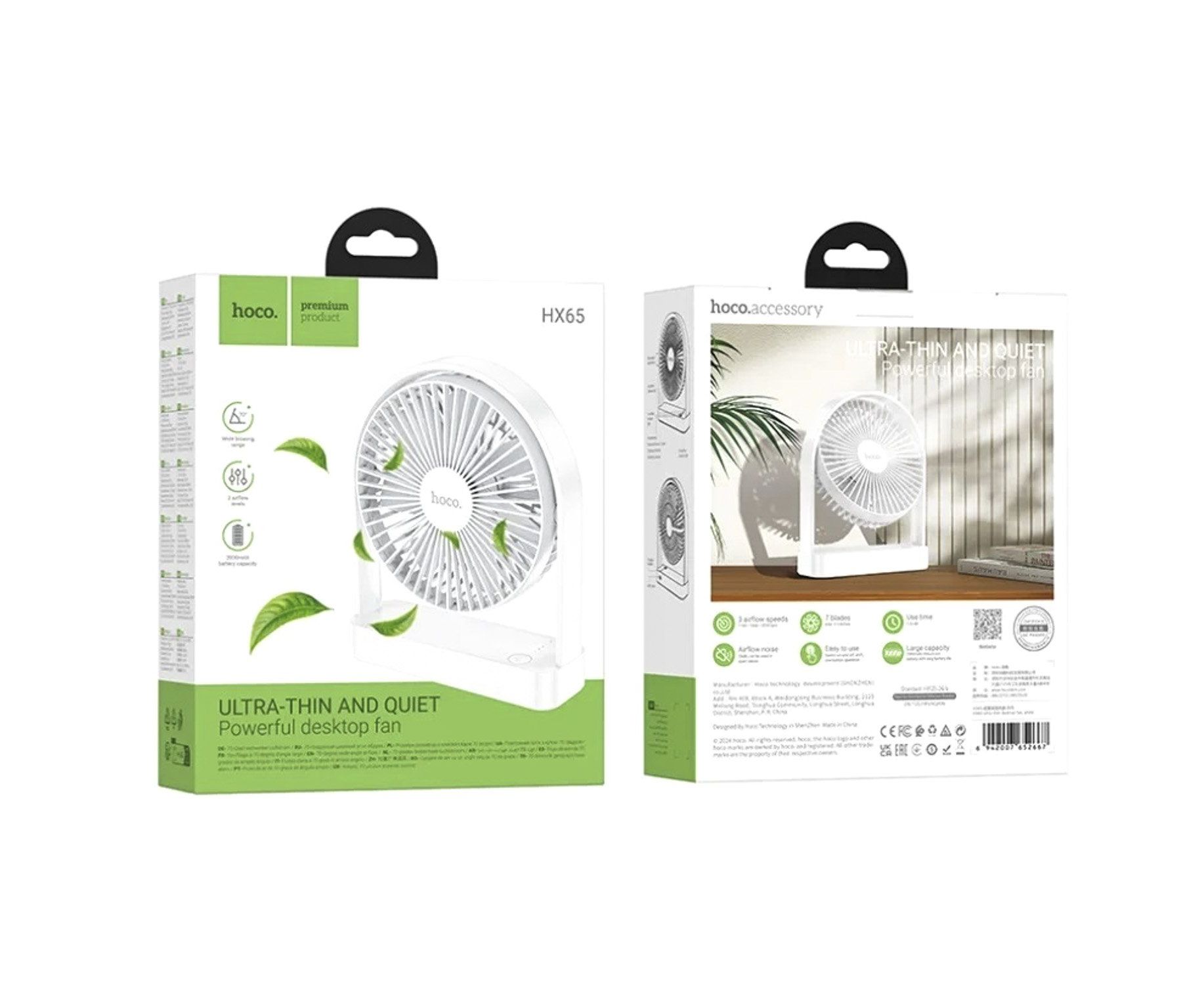 Вентилятор Hoco HX65 ultra-thin (white) (240191)