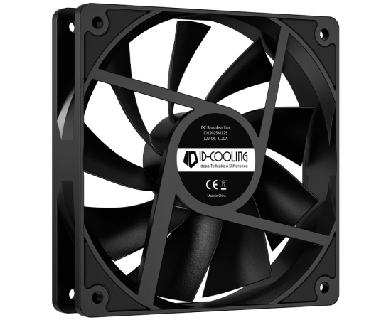 Вентилятор ID-COOLING XF-120-K 120x120x25мм (PWM, Low Noise, резиновые углы, 700-1800об/мин, черный) BOX