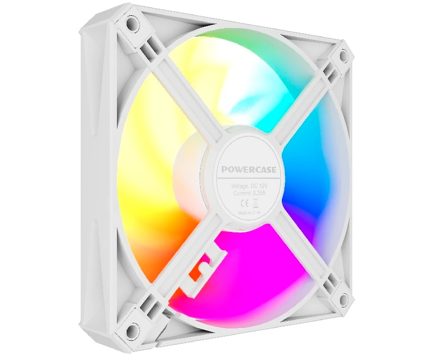Вентилятор Powercase (M56-12W ARGB) White 120x120x25мм (PWM, 4pin PWM (M+F)+ 3pin ARGB (M+F), 700-1500 об/мин) Bulk