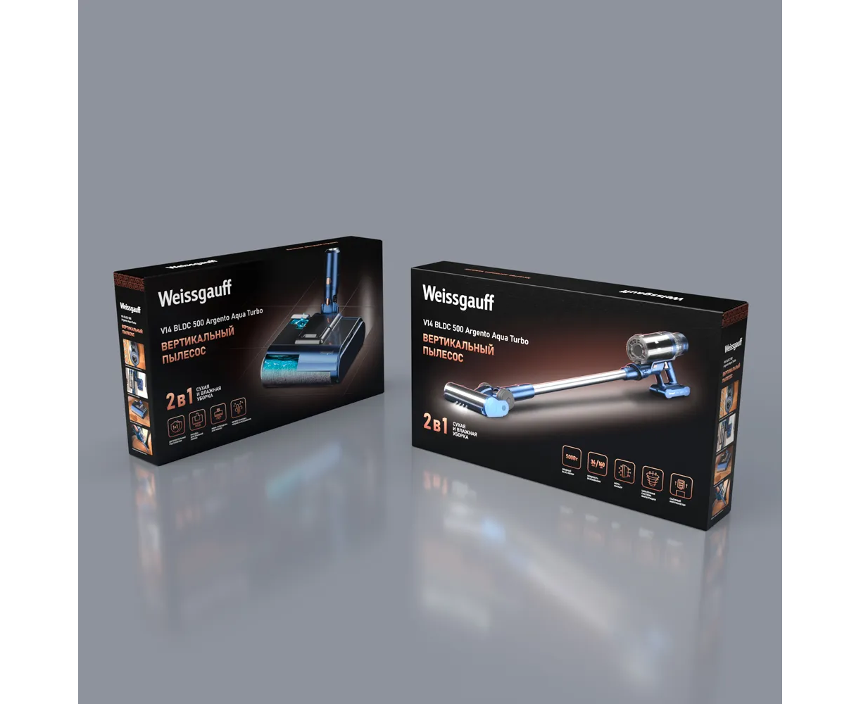 Вертикальный пылесос Weissgauff V14 BLDC 500 Argento Aqua Turbo