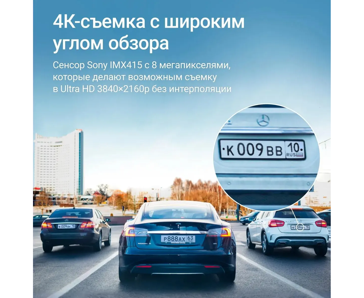 Реальное 4К разрешение, высокая детализация записи ночью, встроенные Wi-Fi и GPS
