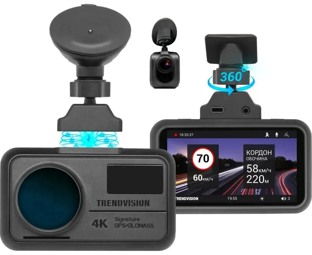 Видеорегистратор TrendVision TDR-725 Real 4K Max черный 8Mpix 2160x3840 2160p 170гр. GPS NT96670