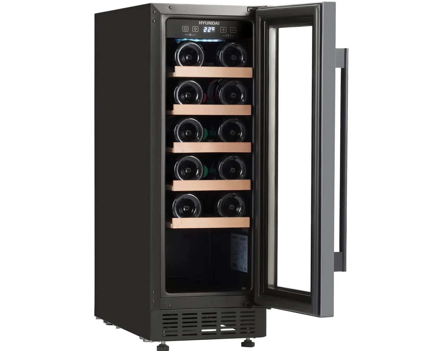 Винный шкаф Hyundai HBWC 0831 SU, вместимость: 20 бутылок, 56л, 82см, черный
