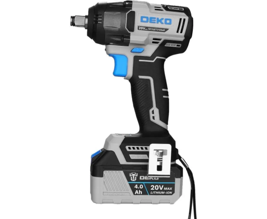 Гайковерт, 2 шт. АКБ, зарядное устройство, скоба поясная, саморез, уплотнительное кольцо, штифт, руководство по эксплуатации, кейс.