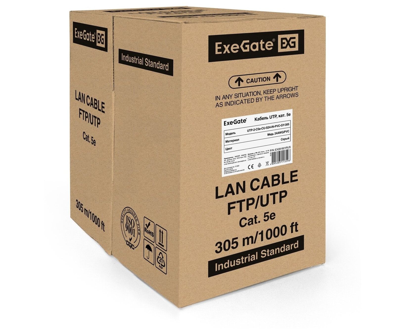 Витая пара Exegate UTP-2-C5e-CU-S24-IN-PVC-GY-305-Fluke (EX281821RUS) серый