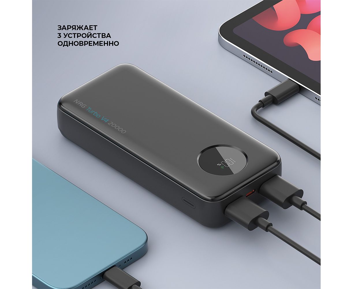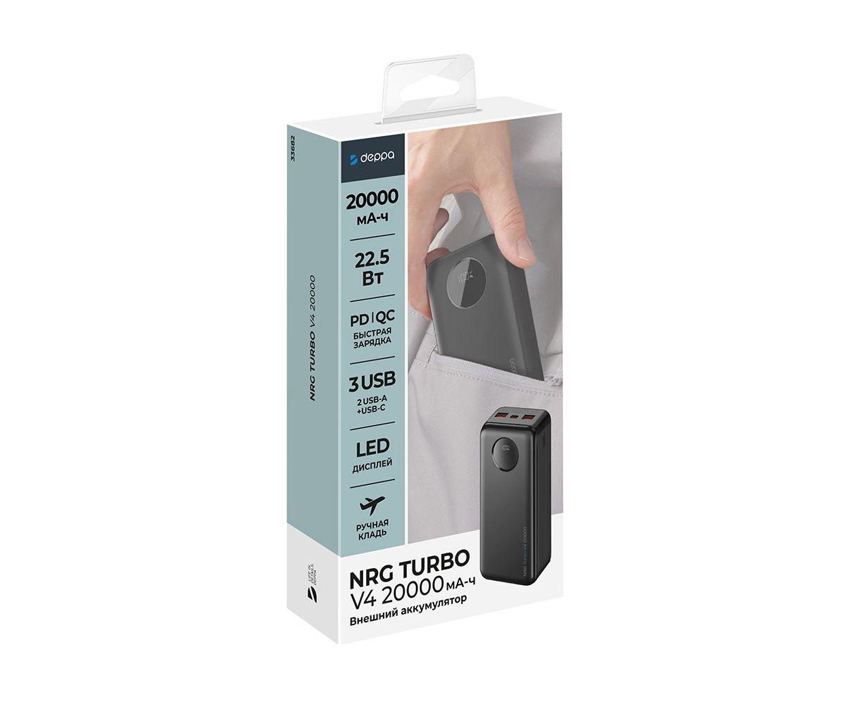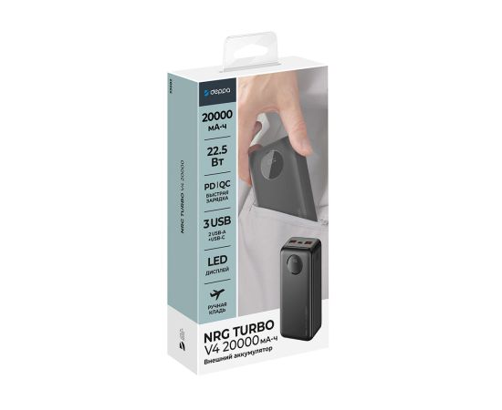 Внешний АКБ NRG Turbo V4 20000 мА-ч, дисплей, черный, Deppa