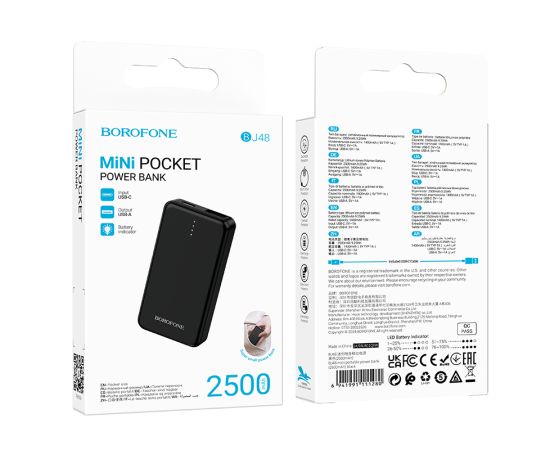 Внешний аккумулятор 2500mAh 1USB+Type-C 1.0A Borofone c LED дисплеем BJ48 mini (Black)