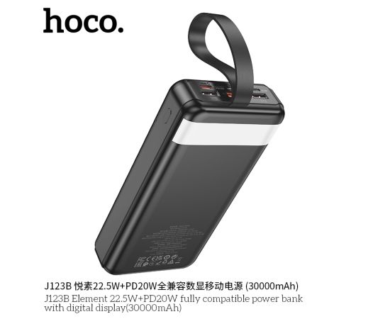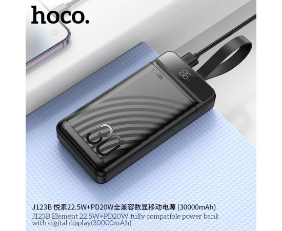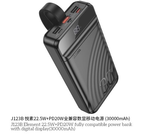 Внешний аккумулятор 30000mAh 22.5W+PD20W 3USB 3.0A с LED-дисплеем Hoco Element J123B (Black)