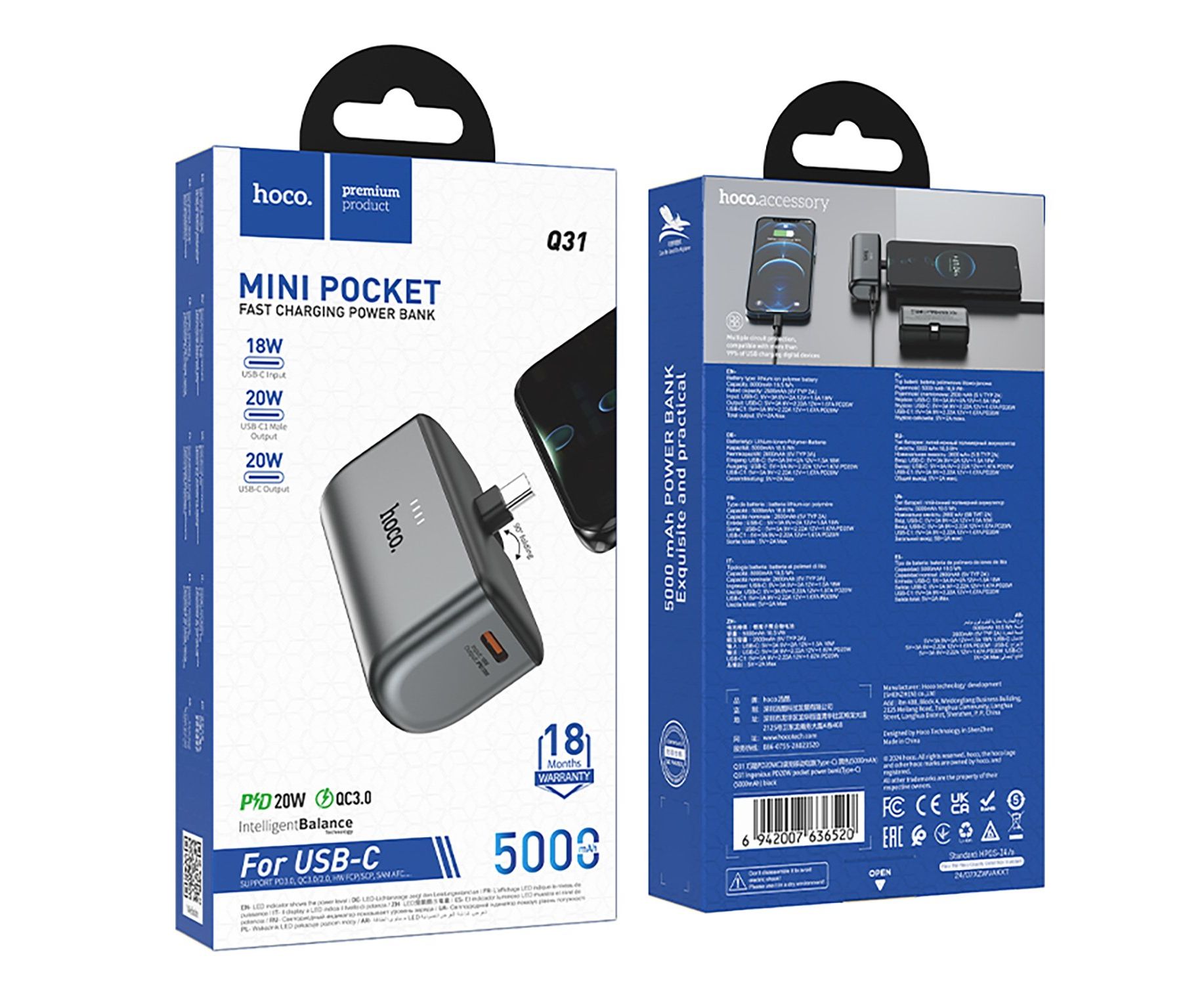 Внешний аккумулятор Hoco Q31 PD20W (Type-C) 5000mAh Type-C/Type-C (black)(236137)