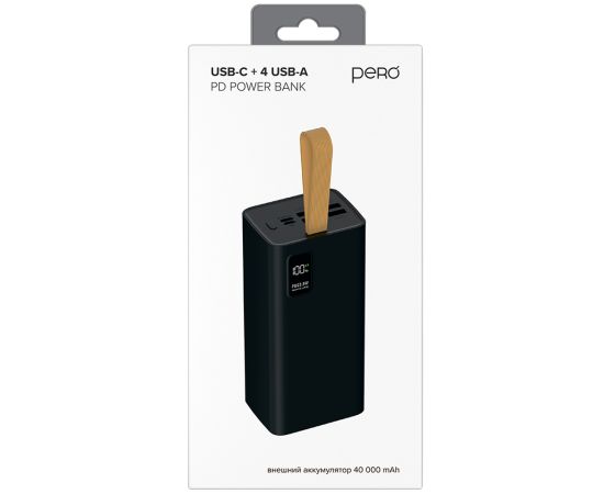 Внешний аккумулятор PERO PB08 40000 mAh, Li-Pol, output USB-C + 4 USB-A, черный