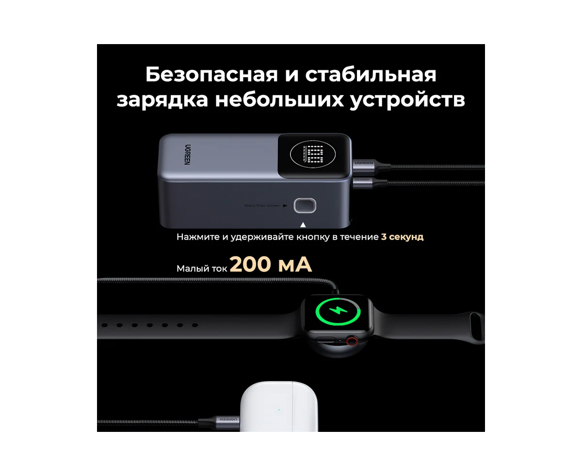 Внешний аккумулятор UGREEN PB724 (35526B) 12000mAh Quick Charging 100W Power Bank Gray