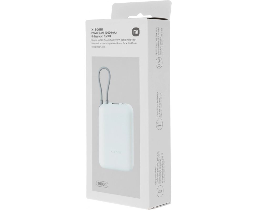 Внешний аккумулятор Xiaomi BHR9073GL 10000mAh встроенный кабель GL P15ZM Ледяной синий