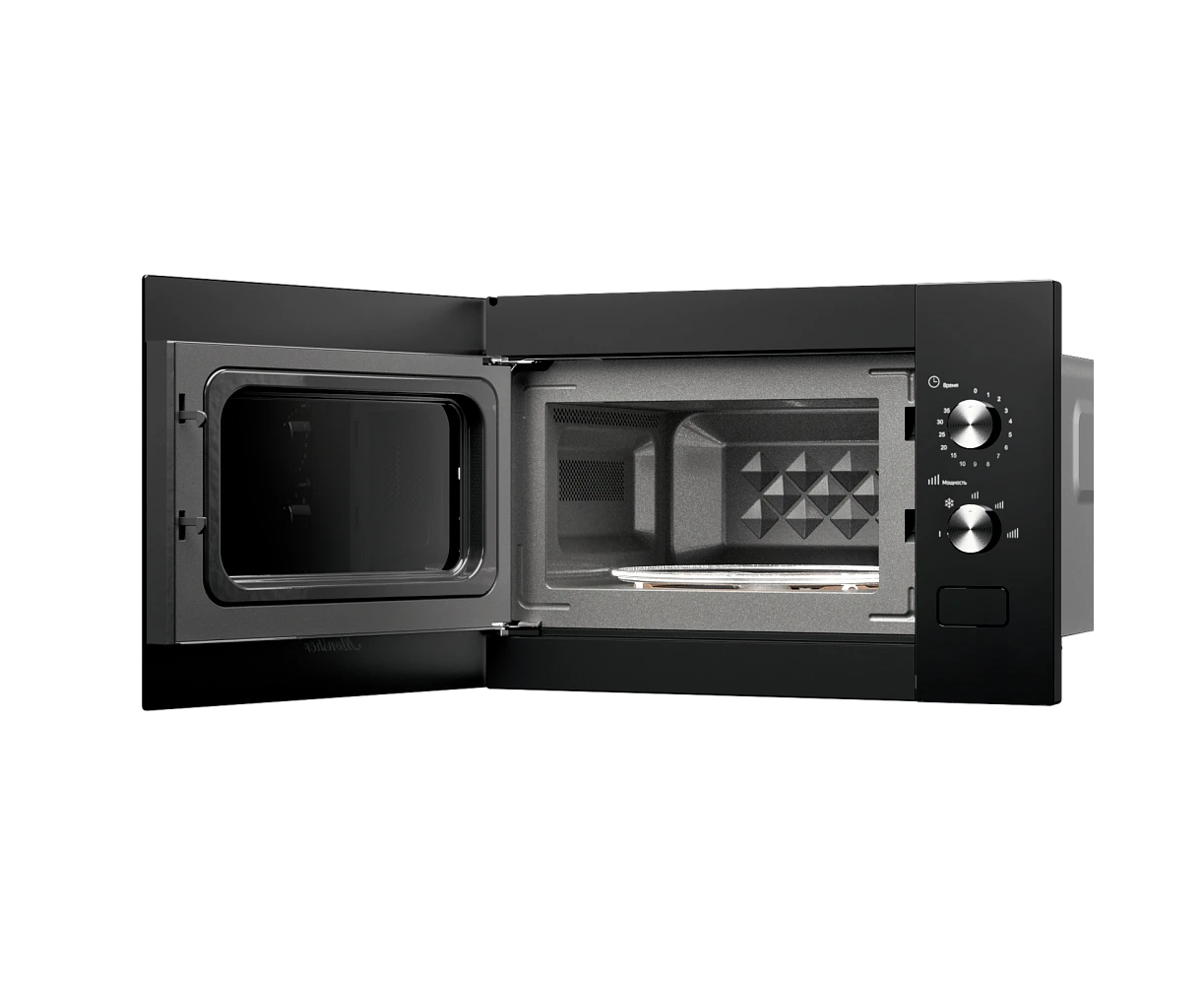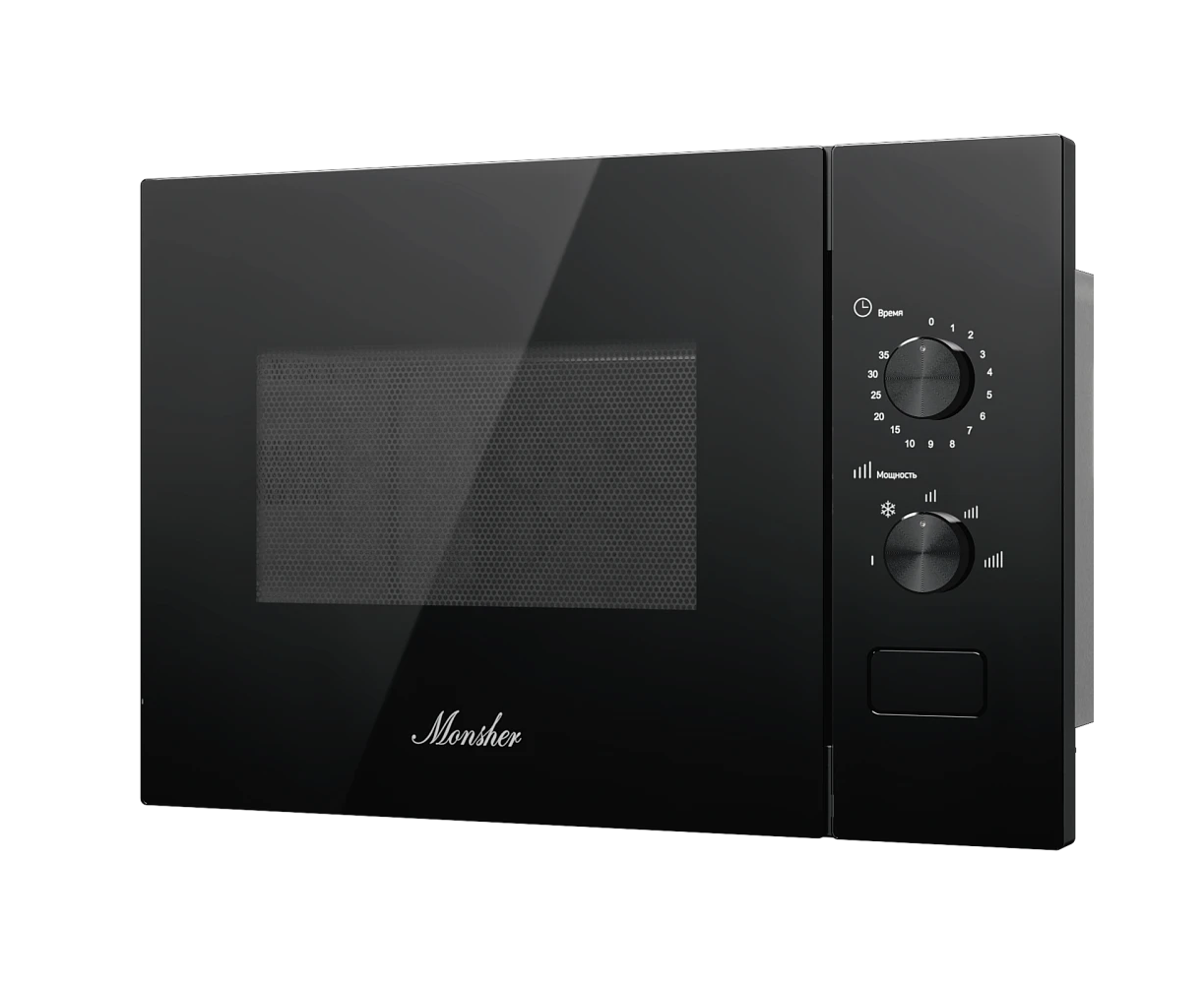 Встраиваемая микроволновая печь MONSHER MMH 1015 Noir High-Tech, 15л, мощность 600Вт, 5 уровней размораживания, поворотное управление черный