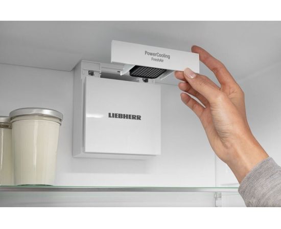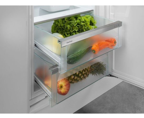 Встраиваемый холодильник Либхер IRe 5100 имеет циркуляционное охлаждение, благодаря чему во всей камере поддерживается одинаковый уровень холода, независимо от высоты расположения полок. При этом свежесть воздуха обеспечивает угольный фильтр, абсорбирующий все неприятные запахи. Дополнительно предусмотрены герметичные контейнеры зоны свежести EasyFresh, в которых овощи и фрукты дольше сохраняют свои полезные свойства, а также не заветриваются и не портятся. Ящики оснащены частично выдвигаемыми телескопическими направляющюими, что делает их использование более комфортным.