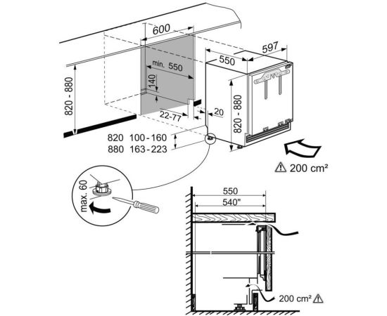 Габариты ниши для встраивания (ВxШxГ) [см]