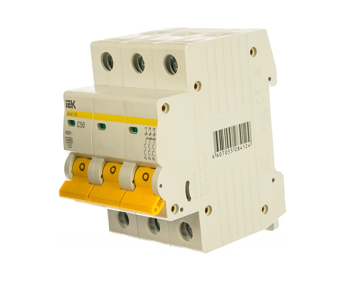 Выключатель автоматический IEK ВА47-29 (MVA20-3-050-C) 3Р 50А 4,5кА х-ка С