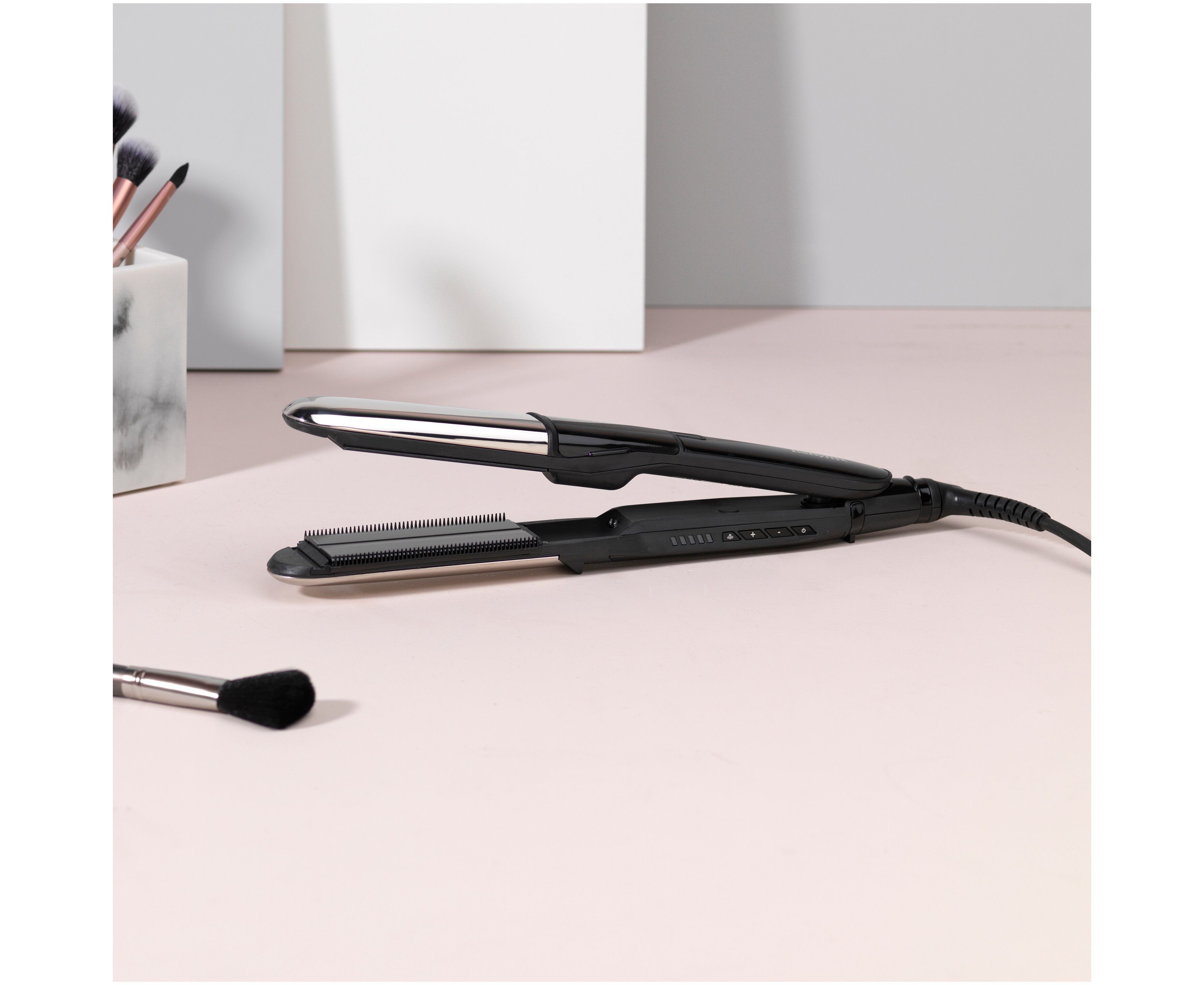 Функция пара. Мгновенно генерируемый микропар непрерывно увлажняет прядь от корней до кончиков