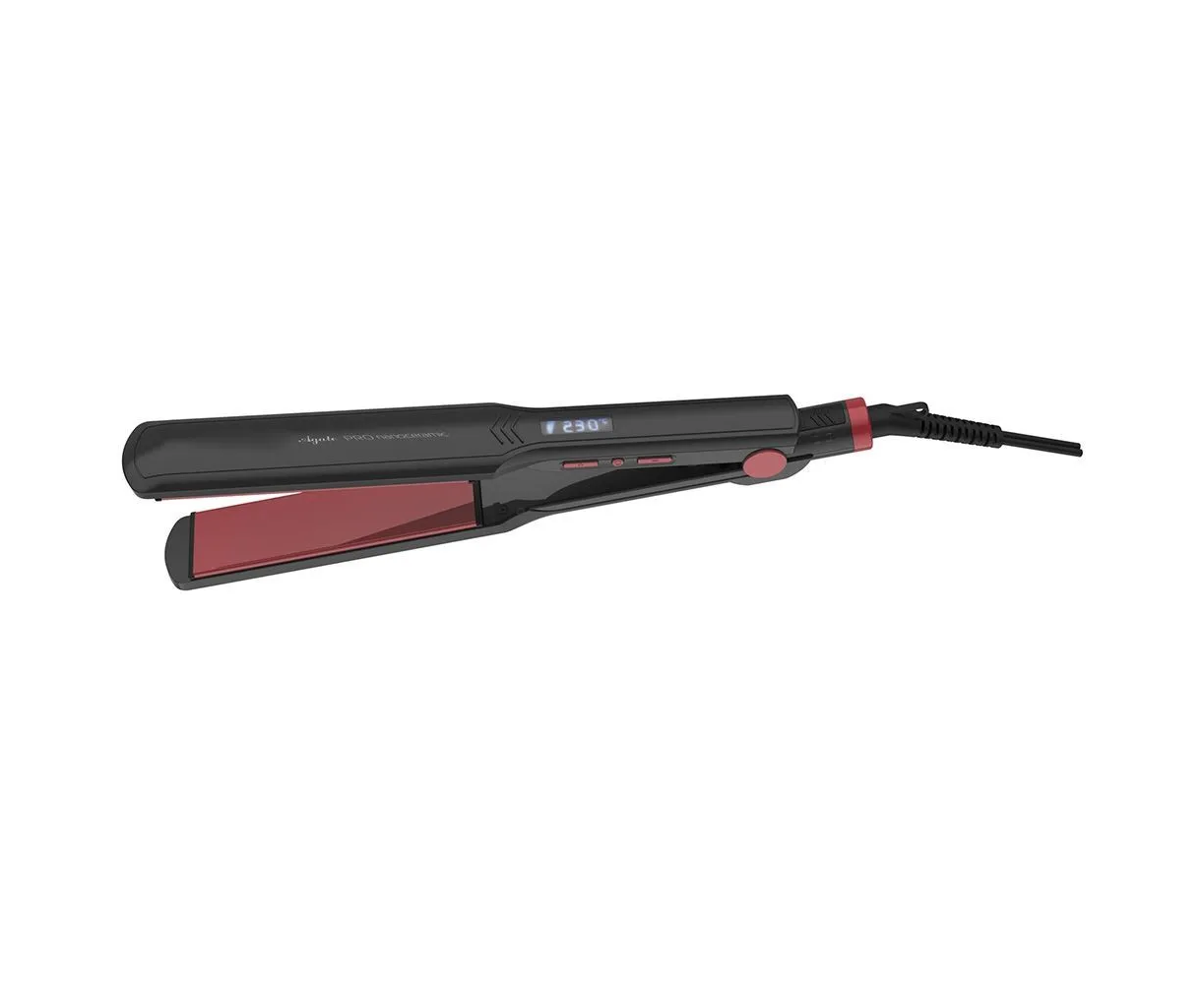 Выпрямитель для волос, мощность 70 Вт, плавающие пластины с турмалиновым покрытием, размер пластин 120х32,6 мм, максимальный температурный нагрев 230 градусов, 6 температурных режимов, LCD дисплей, функция автоотключения через 30 мин работы, время нагрева до оптимальной и стабильной температуры – 2-3 минуты, вращающийся шнур.