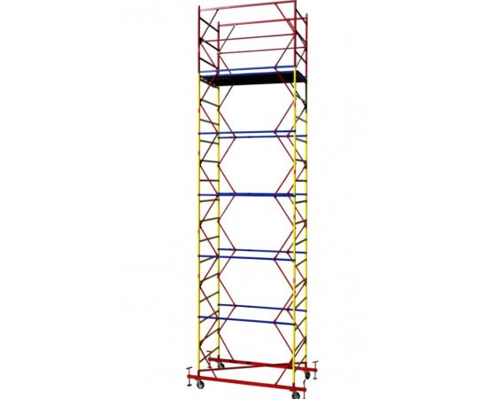 Вышка оборудована колесами и легко перемещается даже одним человеком;