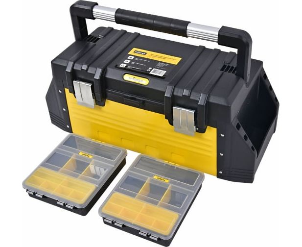 Ящик для инструмента 24,5 с 2 органайзерами Inforce 06-20-04 обладает большими размерами, которые позволяют разместить внутри несколько столярных или слесарных инструментов.