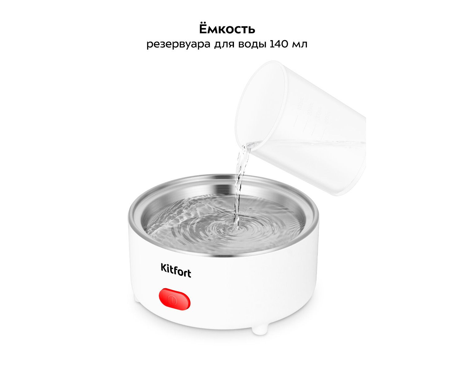 В корпусе яйцеварки находится резервуар для воды ёмкостью 140 мл. Мерный стакан поможет налить вам точное количество воды в резервуар для воды. Заполнять резервуар необходимо в соответствии с таблицей в инструкции.