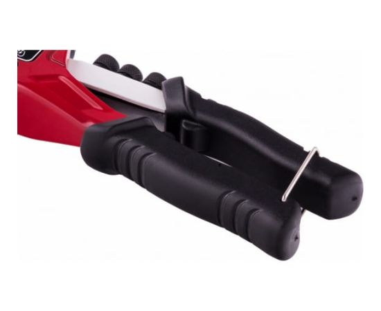Фиксатор предотвращает самопроизвольное раскрытие рукояток при падении и обеспечивает безопасную транспортировку инструмента.