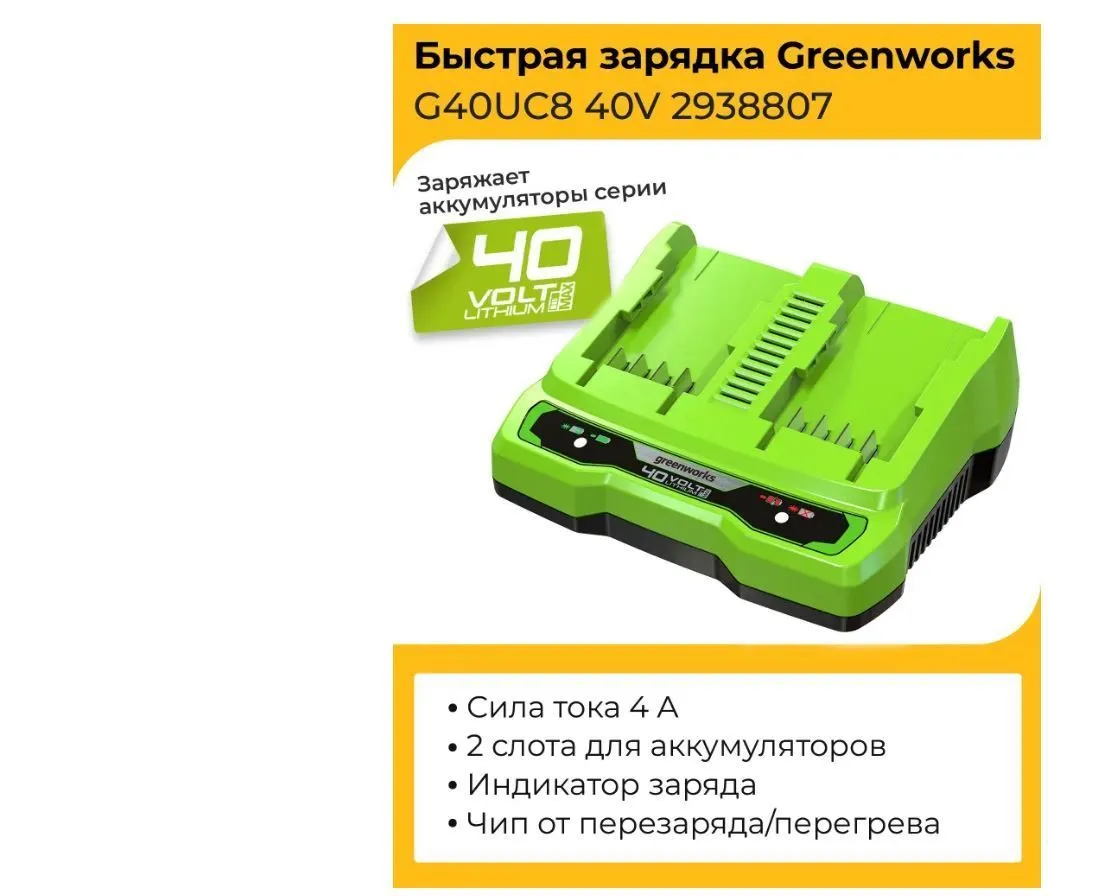 Зарядное устройство GreenWorks G40UC8 (2938807)