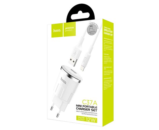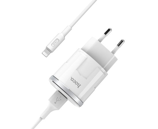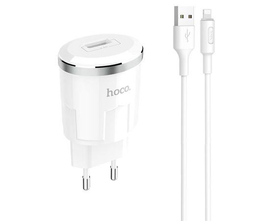 Сетевое зарядное устройство HOCO C37A Thunder 1xUSB с Кабелем USB - Lightning, 2.4A, 10.8W, белый