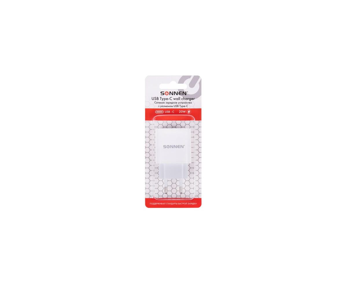Зарядное устройство SONNEN 455507 Type-C PD 20Вт, 3A, белое