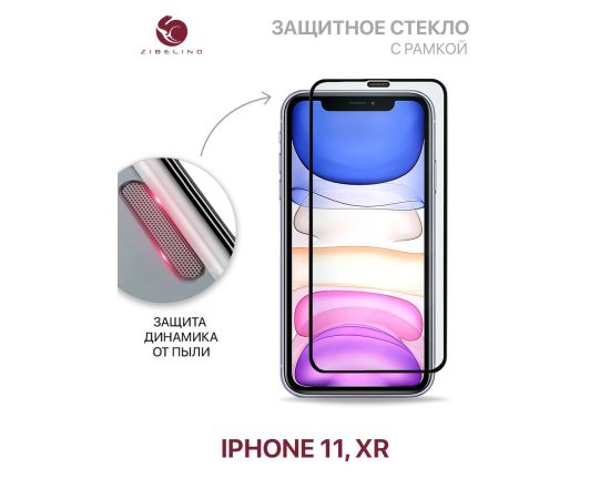 Защитное стекло Premium для Apple iPhone 11, XR с сеточкой, защитой динамика от пыли, с рамкой (Айфон 11 Хr)