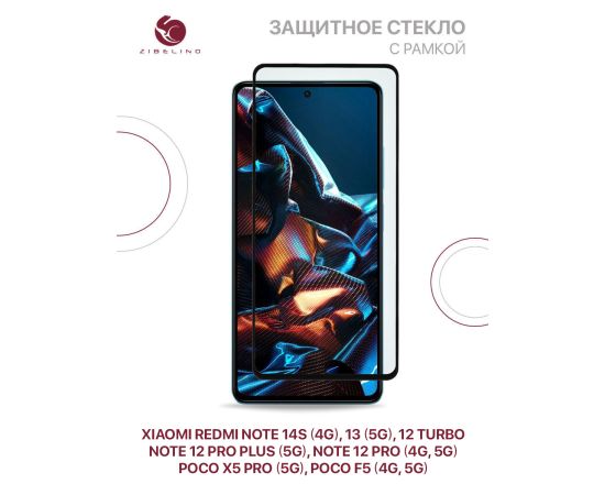 Защитное стекло для Xiaomi Redmi Note 14S (4G) 2025, Note 13 (5G), Note 12 Pro (4G, 5G), 12 Pro Plus (5G), Note 12 Turbo, Poco X5 Pro (5G), Poco F5 (4G, 5G) с рамкой (Редми Нот 13 12 Про Плюс Турбо Поко Х5 Про Ф5)