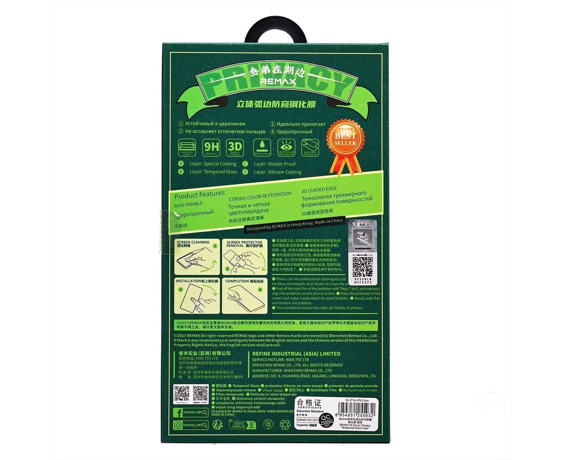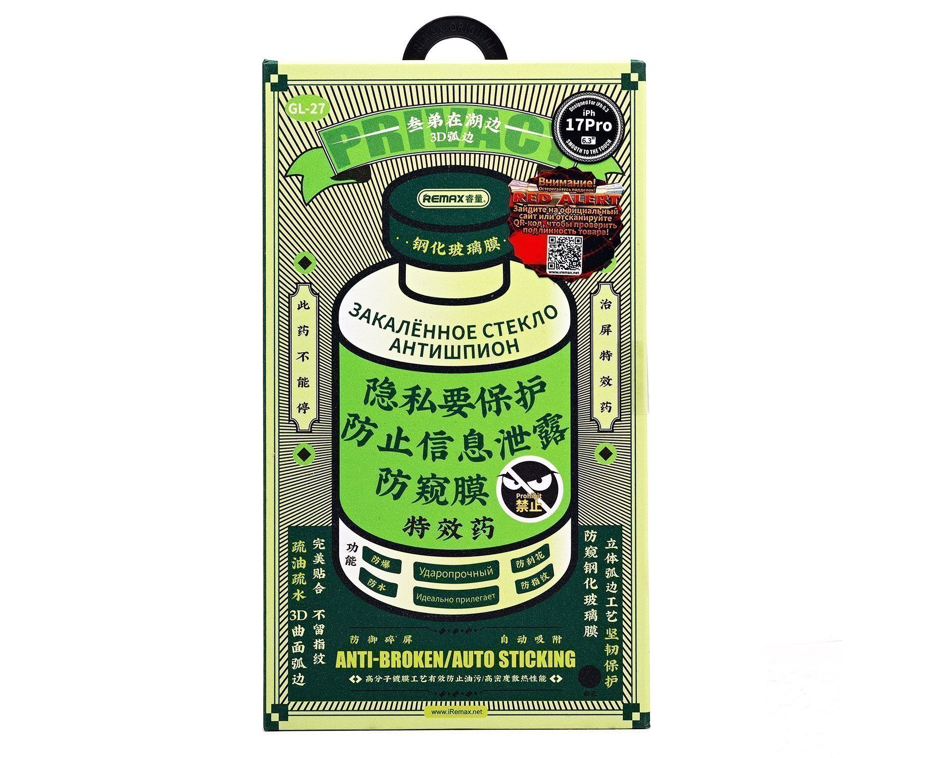 Защитное стекло Full Screen Remax Arcing Privacy GL-27 "Apple iPhone 17 Pro Max" (black) (241831)