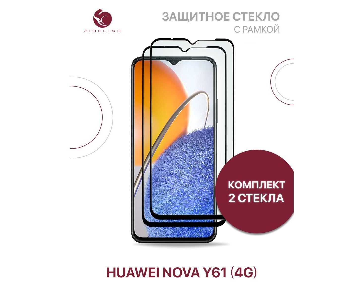 Защитное стекло (Комплект 2 шт) для Huawei Nova Y61 4G с рамкой, Хуавей Нова У61 4G
