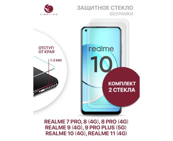 Защитное стекло (Комплект 2 шт) для Realme 7 Pro, 8 4G, 8 Pro 4G, 9 4G, 9 Pro Plus 5G, Realme 10 4G, 11 4G без рамки, с отступом от краев, Реалми 7 Про 8 Про 9 Про Плюс 5G 10 11