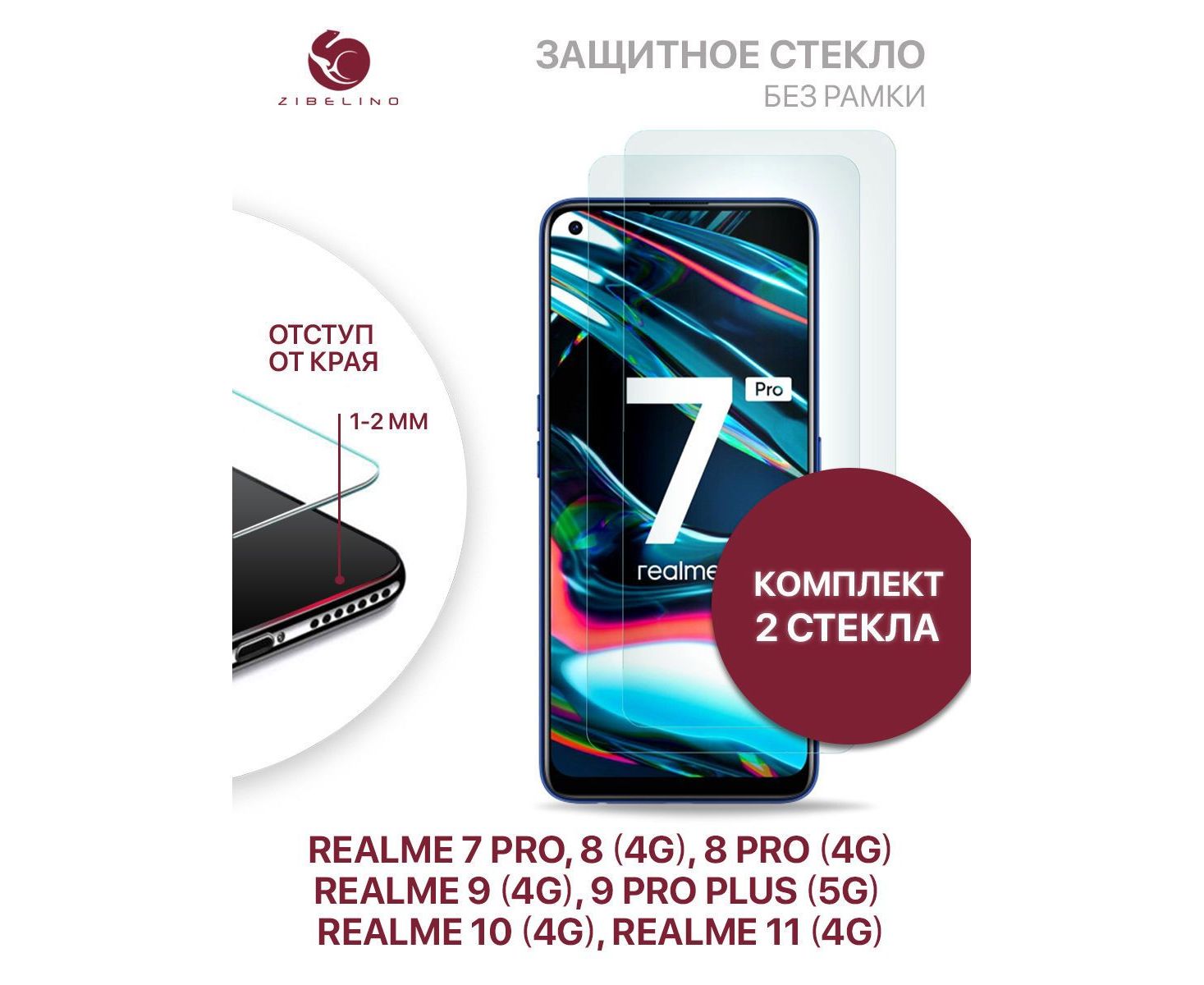 Защитное стекло (Комплект 2 шт) для Realme 7 Pro, 8 4G, 8 Pro 4G, 9 4G, 9 Pro Plus 5G, Realme 10 4G, 11 4G без рамки, с отступом от краев, Реалми 7 Про 8 Про 9 Про Плюс 5G 10 11