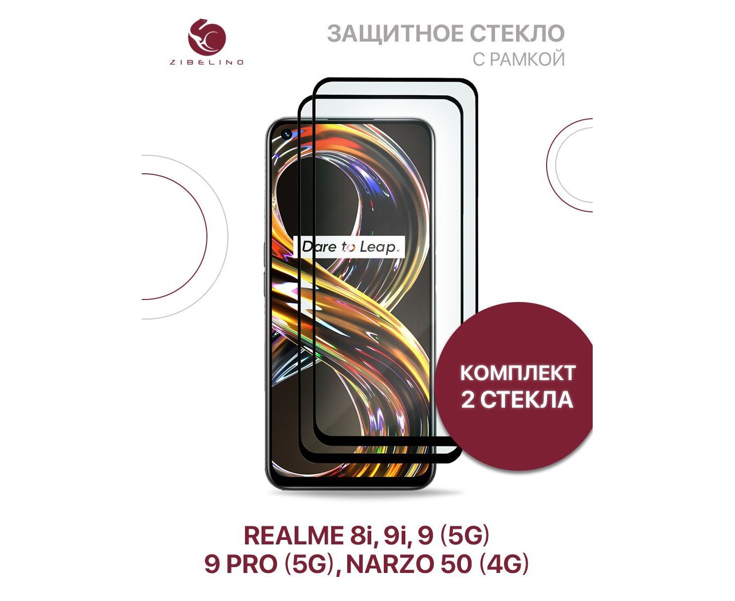 Защитное стекло (Комплект 2 шт) для Realme 8i, 9i, 9 5G, 9 Pro 5G, Realme Narzo 50 4G с рамкой, Реалми 8i 9i 9 Про Нарзо 50