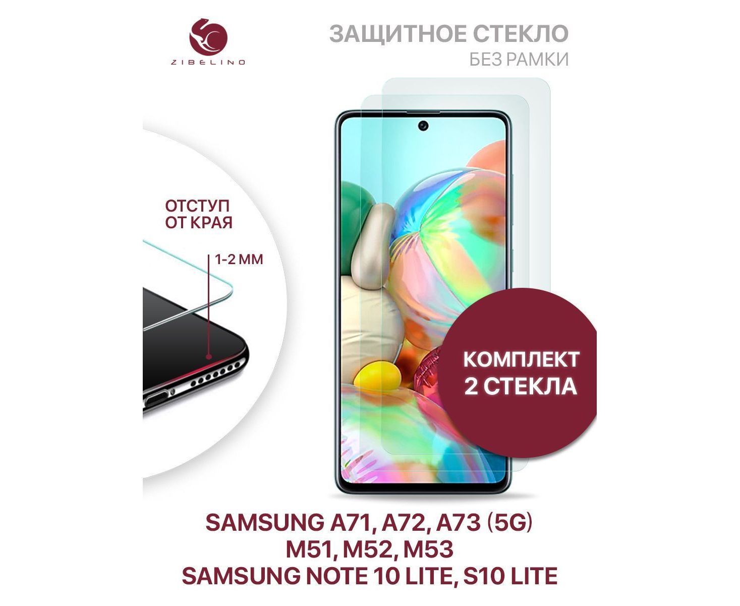 Комплект из 2 шт прозрачное защитное стекло для Samsung Galaxy A71, Samsung A72, Samsung A73 (5G), Samsung M51, Samsung M52, Samsung M53, Samsung Note 10 Lite, Samsung S10 Lite (6.7") без рамки с отступом от краев. Закрывает только плоскую часть экрана. Более долгий срок эксплуатации (края не крошатся и не трескаются). Оригинальные накладки не выдавливают края данного стекла. Не уменьшают по краям видимость дисплея. Для стекла Самсунг Галакси А71, А72, А73 (5G) использована технология обработки краев стекла (2,5D). Олеофобное покрытие стекла Самсунг Галакси М51, М52, М53 предотвращает появление следов от пальцев. Защитное стекло Самсунг Галакси Нот 10 Лайт упаковано в надежную фирменную упаковку из плотного картона, стекло размещено в ложемент из плотного гофрокартона. Красивая упаковка защитного стекла Самсунг Гелакси S10 Лайт подойдет для подарка друзьям и близким. Каждое защитное стекло проверяется перед отправкой. В комплекте влажная салфетка для обезжиривания экрана, ткань из микрофибры, стикеры для удаления пыли. Изображение стекла и устройства на упаковке являются условными.