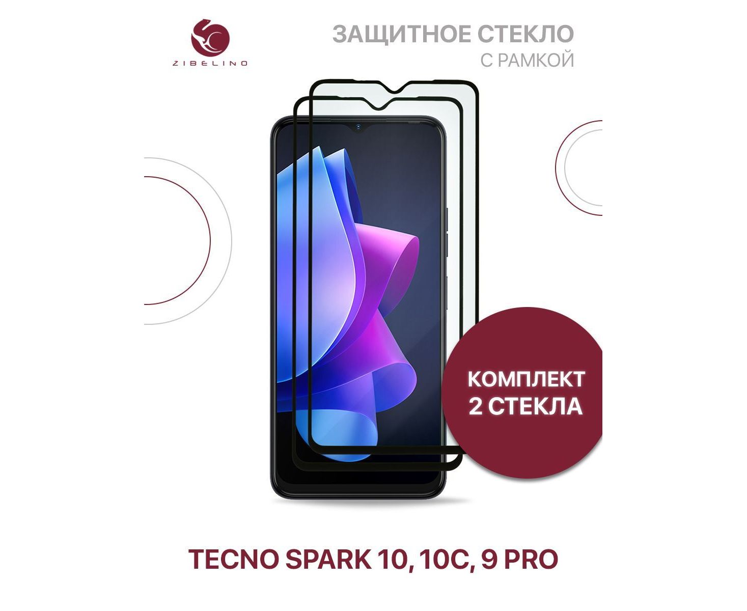 Защитное стекло (Комплект 2 шт) для Tecno Spark 10, 10C, Tecno Spark 9 Pro с рамкой (Текно Спарк 10 10С 9 Про)