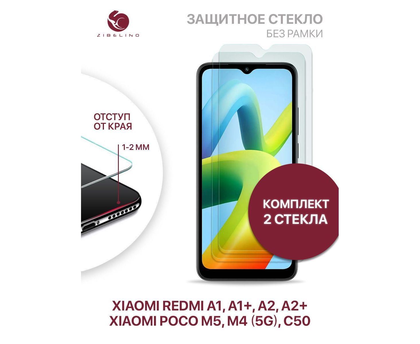 Защитное стекло (Комплект 2 шт) для Xiaomi Redmi A1, A1+, Xiaomi Redmi A2, A2+, Poco M5, M4 5G, Poco C50 C51 без рамки, с отступом от краев, Сяоми Редми А1 А1 + А2 А2 + Поко М5 М4 5G С50 С51
