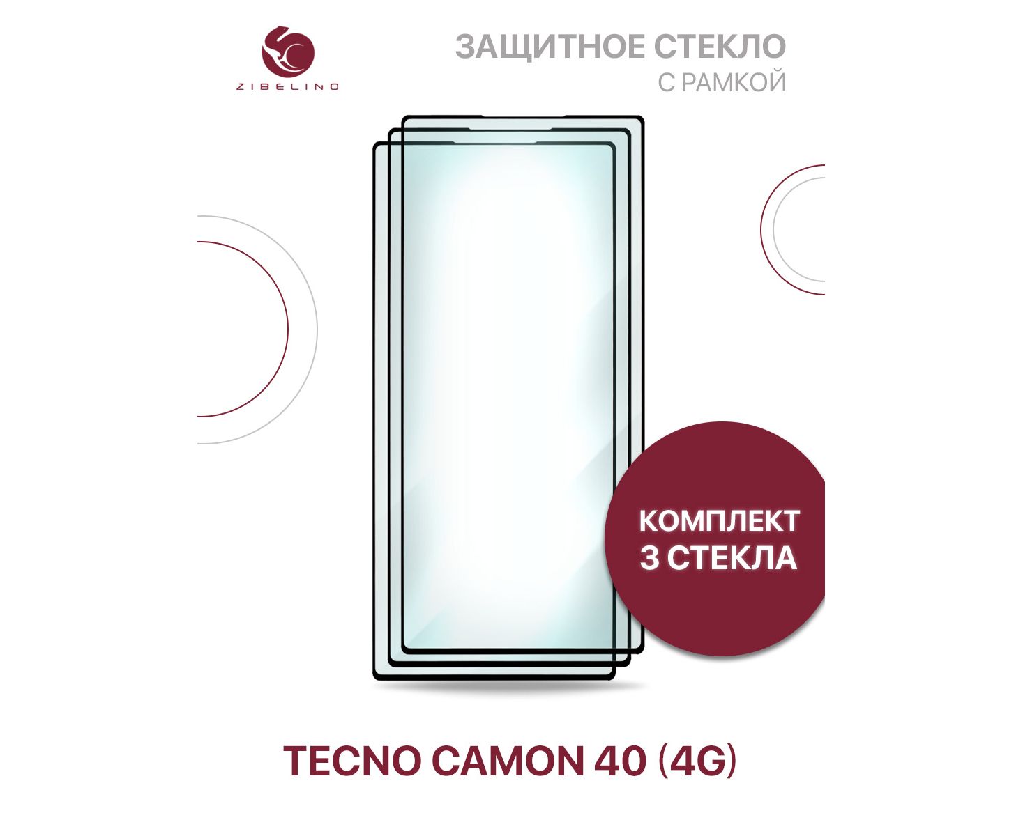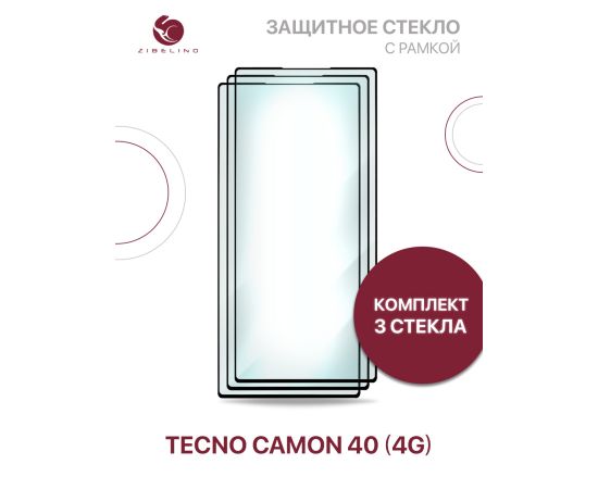 Защитное стекло (Комплект 3 шт) для Tecno Camon 40 (4G) с рамкой (Текно Камон 40)