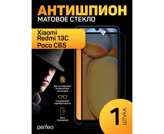 Защитное стекло матовое Антишпион тех пак Xiaomi Redmi 13C/Poco C65
