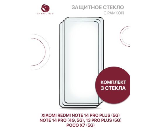 Защитное стекло Premium (КОМПЛЕКТ 3 шт) для Xiaomi Poco X7 (5G), Redmi Note 14 Pro (4G/5G), Note 14 Pro+ Plus (5G), Note 13 Pro+ Plus (5G) полноэкранное, с рамкой (Ксиоми Поко Х7 Про, Редми Нот 13 Про Плюс, Нот 14 Про Плюс, Нот 14 Про)