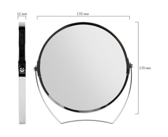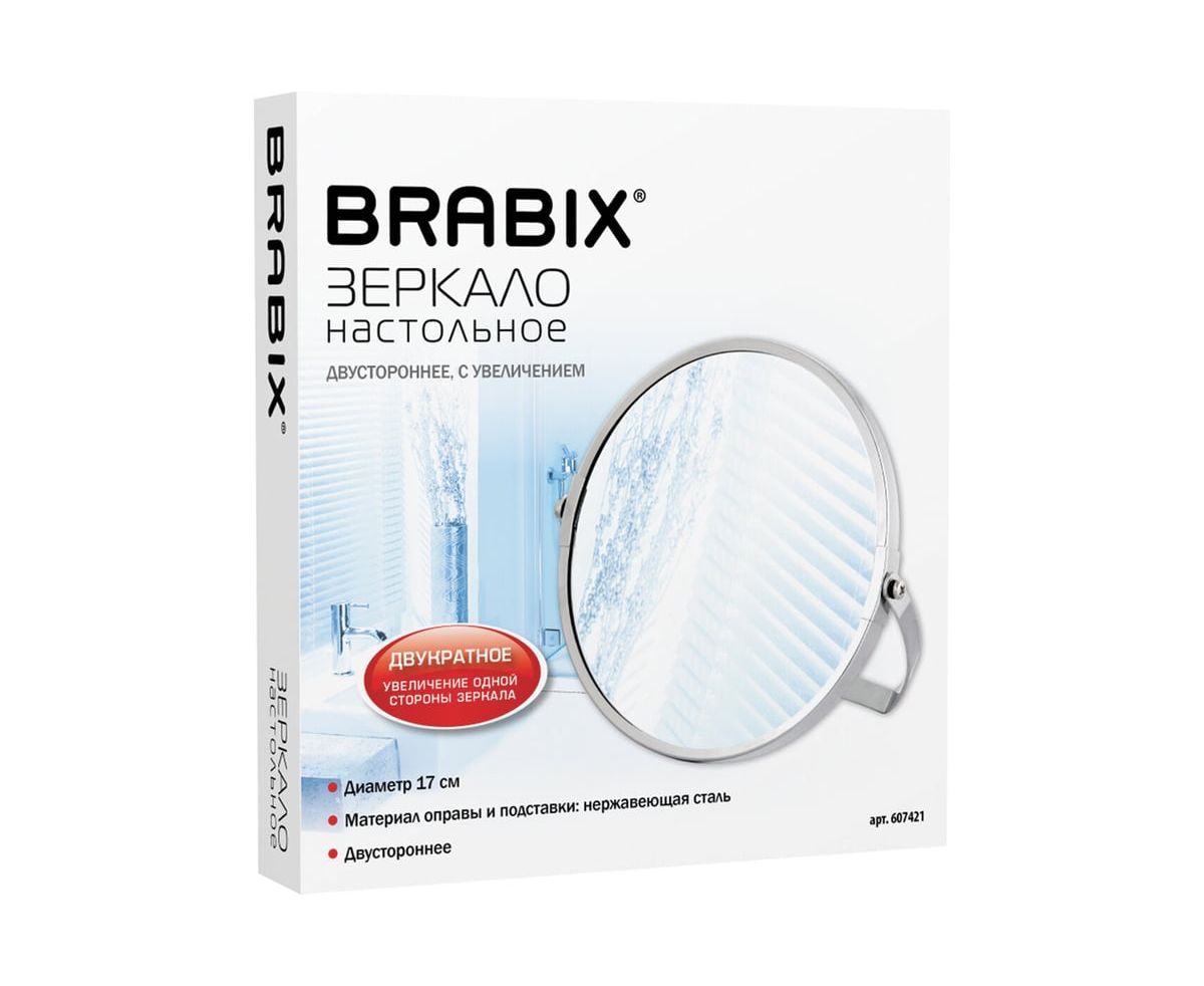 Зеркало настольное BRABIX 607421 круглое, диаметр 17см, двустороннее, с увеличением, рамка из нержавеющей стали